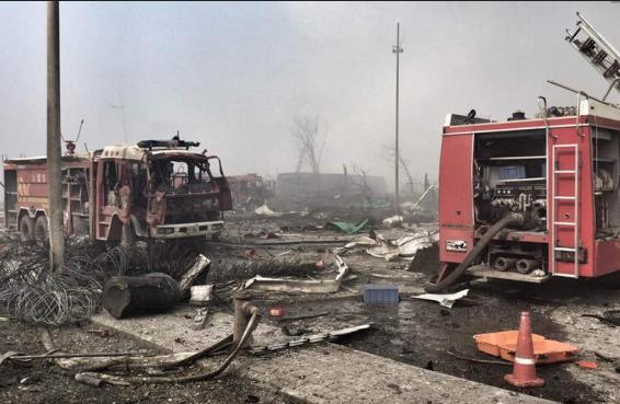 在此之前,46個公安消防中隊143輛消防車1000余名消防官兵在爆炸現(xiàn)場全力處置。